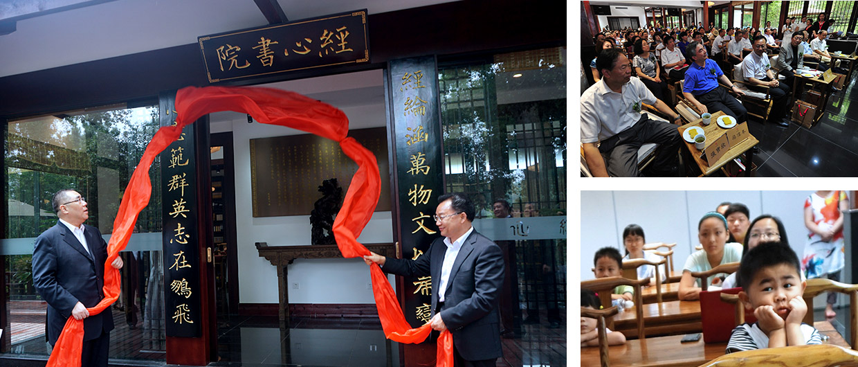 有“餐飲皇后”之稱(chēng)的華敏投資董事長(cháng)熊華敏想到了復建經(jīng)心書(shū)院,卓爾控股有限公司董事長(cháng)閻志、奧山集團董事長(cháng)鄔劍剛、枝江酒業(yè)董事長(cháng)蔣紅星、均瑤集團總裁王鈞豪、洪泰基金創(chuàng )始人盛希泰……秉著(zhù)“文化傳承、智慧分享、資源鏈接、合作交流”的初衷,一群有使命感的企業(yè)家紛紛響應抱團復建。復建后的經(jīng)心書(shū)院已佇立在武漢東湖風(fēng)景區櫻花園內。她是一座仿唐式全木制庭院建筑,古樸典雅、得天獨厚,占地面積約為1500平米;她居于東湖中心,三面環(huán)水、冠蓋成蔭,四周環(huán)境既有優(yōu)美如畫(huà)的自然風(fēng)光、又是豐富的楚文化景觀(guān)展示之所。